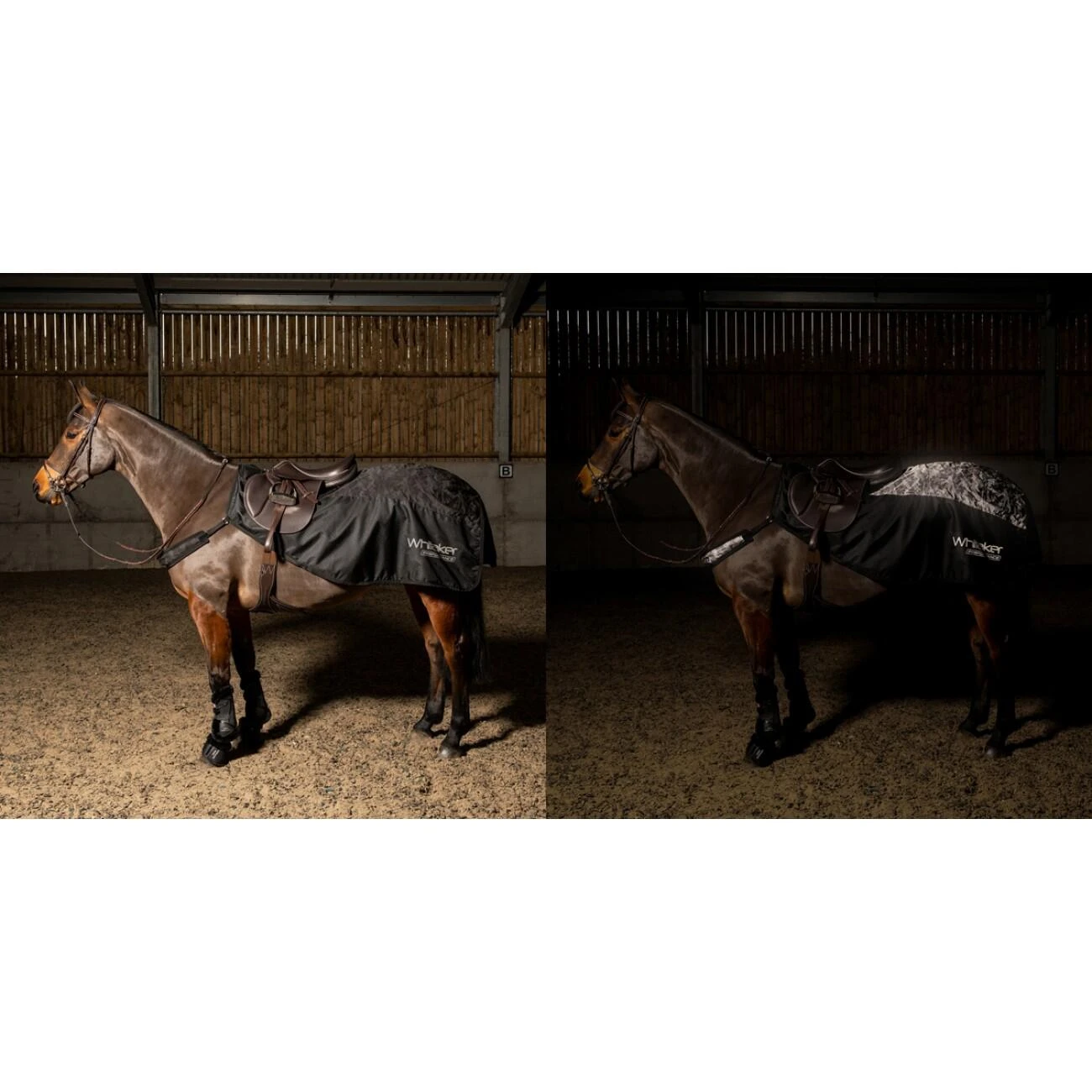 Perfect for cold and dark conditions, reflective panel along back, full reflective tail cover, removable chest strap in full reflective print, fully fleece lined for warmth, waterproof upper, saddle hold with Velcro fastenings across the withers, girth straps to keep the rug in place, taped seams, matching items available