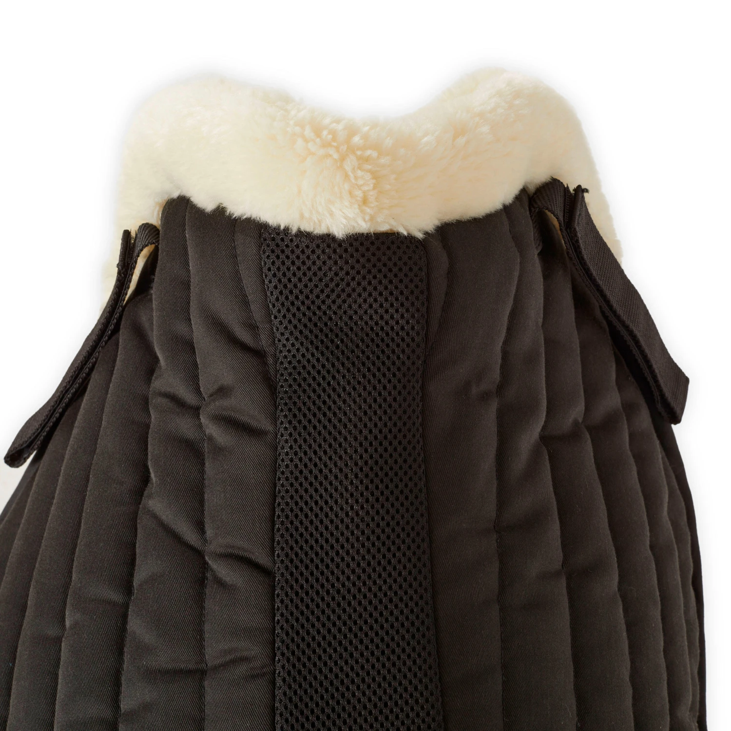 The mesh topline is wider at the withers to free up the horse’s movement. The area that may come into contact with the withers is thin and flexible. The back foam pads are carefully positioned to avoid discomfort. For example, the three-layer cushioning stops high on the saddle pad to avoid compression of the thoracic cage. The foam was deliberately designed to extend beyond the saddle.