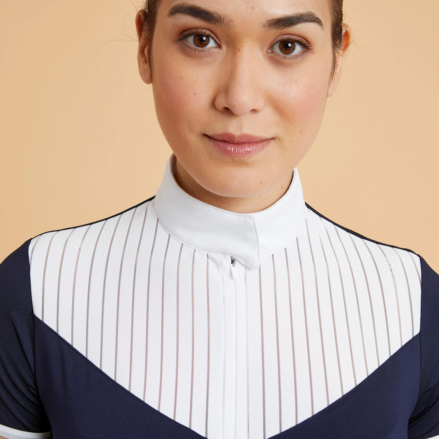 Our range of competition products has been designed and developed to reflect the culture of equestrian shows. You’ll find subtle, feminine details that match perfectly the show outfit expectations.For example, silver piping has been added to the ends of the short sleeves. The shirt front is made of an open, elegant fabric that’s also used in areas prone to heavier perspiration.