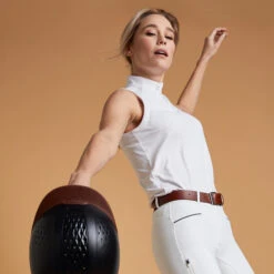 Our equestrian designers created this sleeveless show shirt for intermediate riders like you! It’s perfect for competitions, particularly in warm weather.Our Sleeveless Show Shirt 500 feels really nice against your skin! The mesh panel on the back helps wick away perspiration when you are exercising intensely.